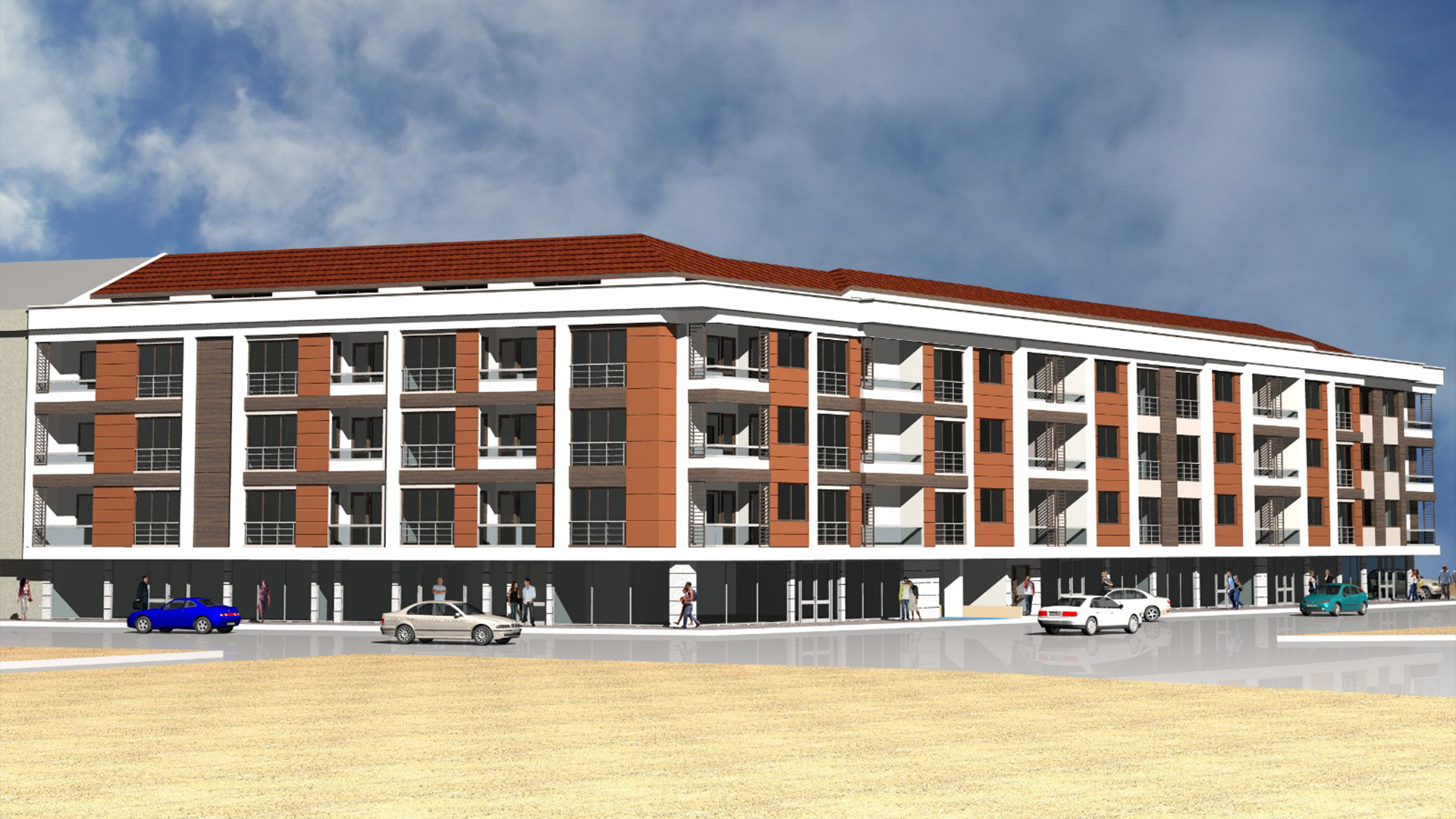 Bu proje; uzun blok formu ve ritmik cephe düzeniyle bulunduğu çevrede güçlü bir mimari süreklilik oluşturur. Kırma çatı detayı, modern kütle diline sıcak bir karakter katarken; cephede kullanılan renk ve doku geçişleri yapıya dinamik, okunabilir ve zamansız bir kimlik kazandırır. Balkonlar ve açıklık oranları, hem gün ışığı hem de kullanıcı konforu gözetilerek dengeli bir şekilde kurgulanmıştır.
